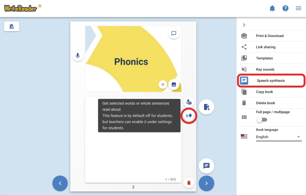The platform offers templates for explicit phonics instruction, allowing students authentic practice connecting letters with sounds. Features such as speech synthesis and read-aloud (text-to-speech) reinforce these connections, making phonics practice more interactive and effective.