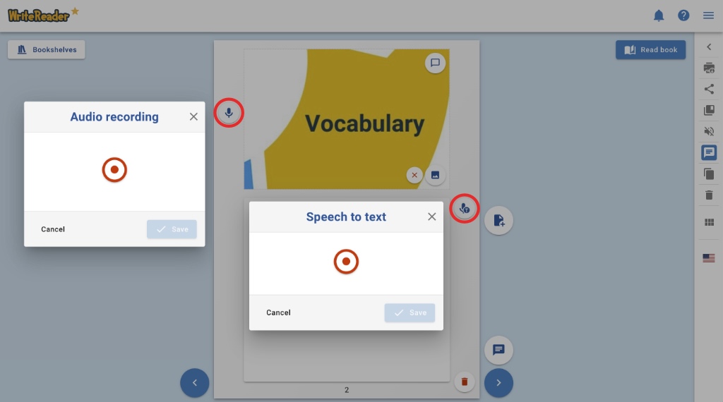 WriteReader’s focus on student-created content ensures that students are exposed to and actively use a wide range of vocabulary. The speech-to-text feature allows students to speak their thoughts and see them transcribed into text, expanding their vocabulary as they write. The voice recording feature lets students narrate their stories, reinforcing word usage and pronunciation.